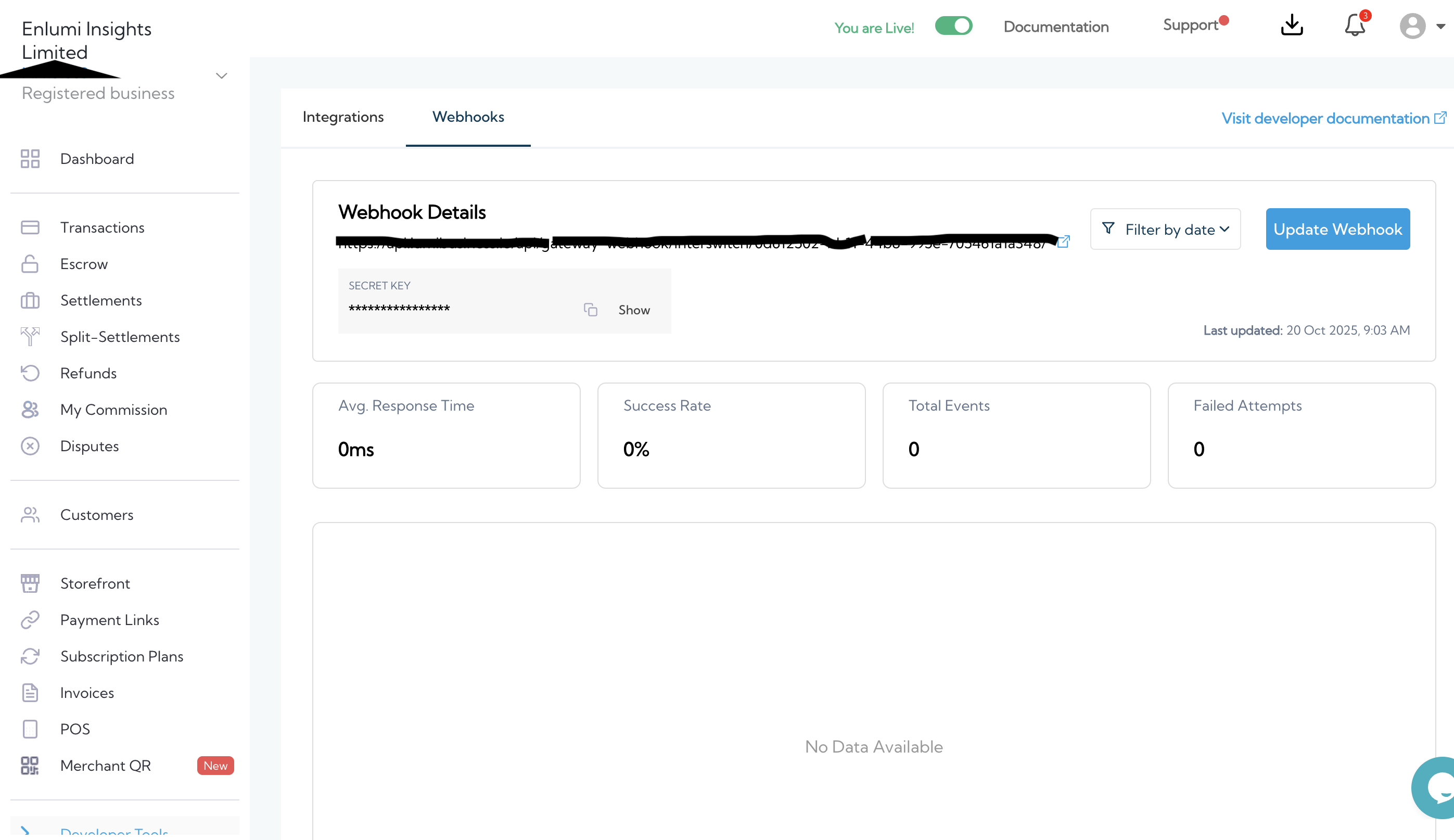 The most common issue is the webhook URL not being added or being added incorrectly in Quickteller.